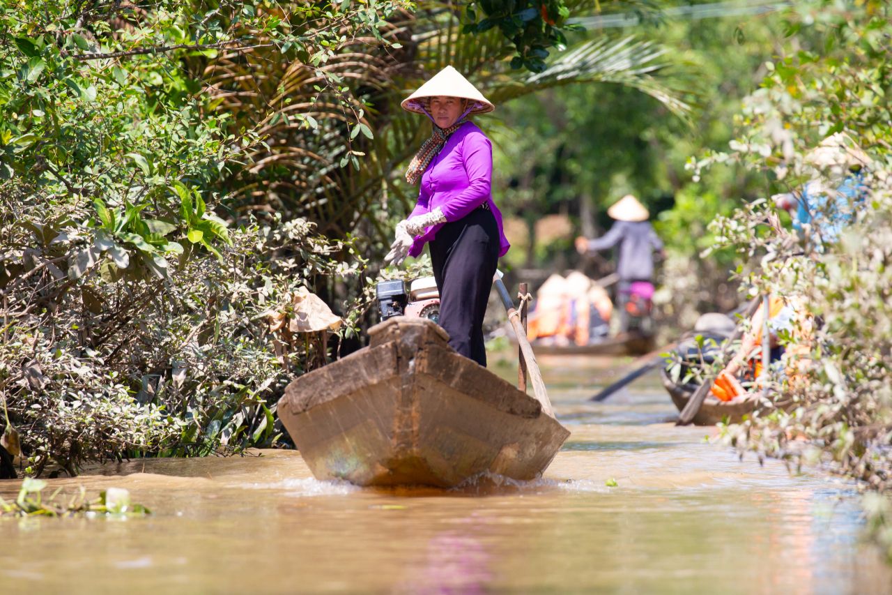 Travel from Vietnam to Cambodia by river cruiser,  car and speed boat. Explore the fantastic scenery of the Mekong Delta. Along the way you pass fascinating Mekong Delta landscapes with an abundance of rice paddies and fruit orchards, life along the shores, playing children, Buddhist pagodas and colorful Cao Dai temples.